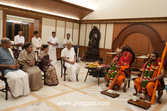 ಸ್ವಾಮೀಜಿಯವರು ಧರ್ಮಾಧಿಕಾರಿ ಡಿ. ವೀರೇಂದ್ರ ಹೆಗ್ಗಡೆಯವರು, ಹೇಮಾವತಿ ವಿ. ಹೆಗ್ಗಡೆಯವರು, ಡಿ. ಹರ್ಷೇಂದ್ರ ಕುಮಾರ್ ಮತ್ತು ಸುಪ್ರಿಯಾ ಹರ್ಷೇಂದ್ರ ಕುಮಾರ್ ಅವರಿಗೆ ಫಲಮಂತ್ರಾಕ್ಷತೆ ನೀಡಿ ಗೌರವಿಸಿ ಆಶೀರ್ವದಿಸಿದರು.