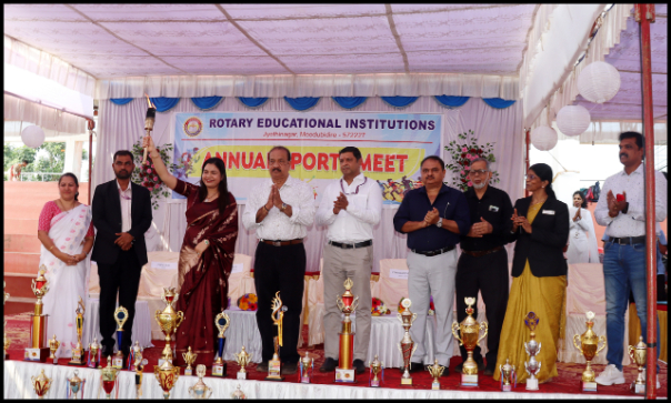 ರೋಟರಿ ಸಂಸ್ಥೆಯ ಅಧ್ಯಕ್ಷರಾದ ನಾರಾಯಣ್ ಪಿ. ಎಂ ಅವರು ಶಾಲಾ ಧ್ವಜದ ಧ್ವಜಾರೋಹಣ ಮಾಡಿ , "ಕ್ರೀಡೆಯು ಕೇವಲ ದೈಹಿಕ ವ್ಯಾಯಾಮವಲ್ಲ , ಬದಲಾಗಿ ಇದು ಶಿಸ್ತು , ಸಂಘಟನೆ ಹಾಗೂ ಕ್ರೀಡಾ ಮನೋಭಾವವನ್ನು ಪ್ರೇರೇಪಿಸುತ್ತದೆ ಎಂದರು.