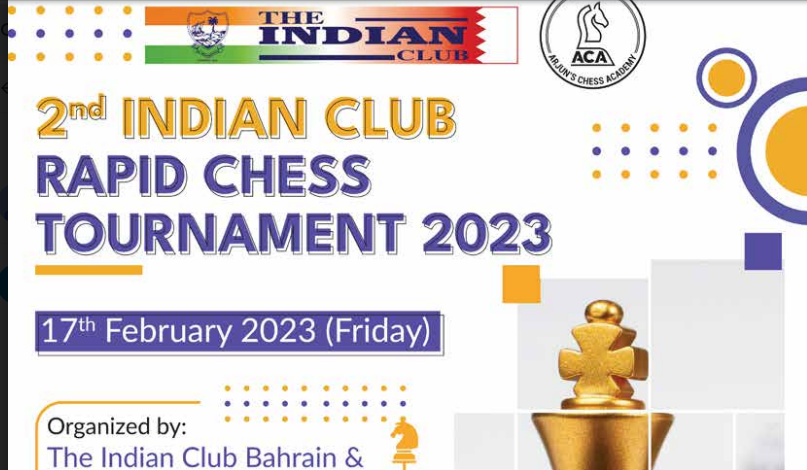 Manama: The second Indian Club Rapid Chess Tournament will be held on Friday, February 17, 2023.