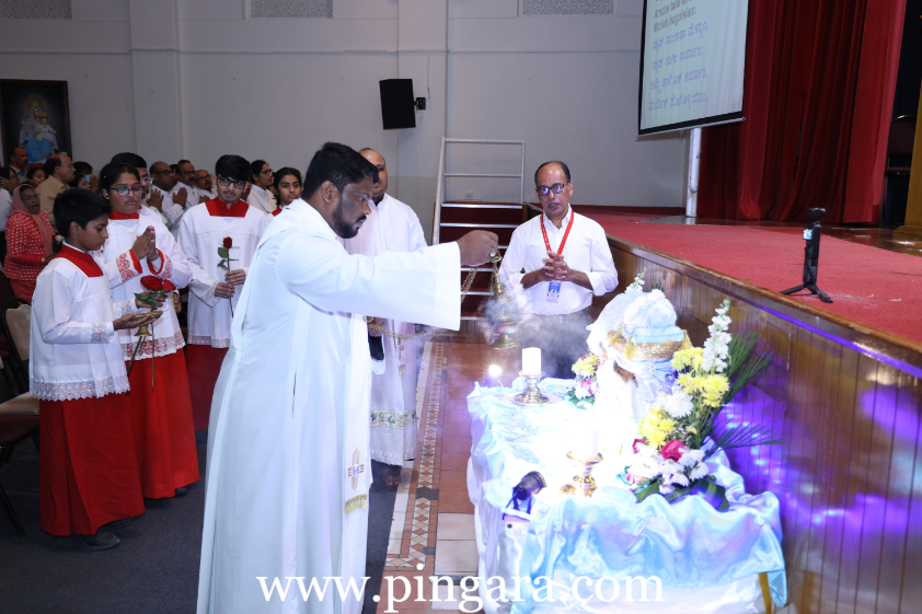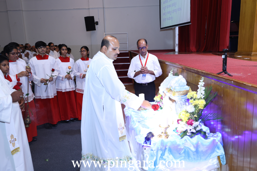 Bahrain: Sixth day of Novena began with showering flowers on infant Mary at Sacred Heart Church Manama Bahrain.