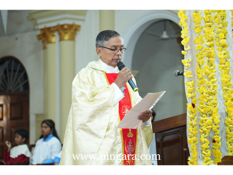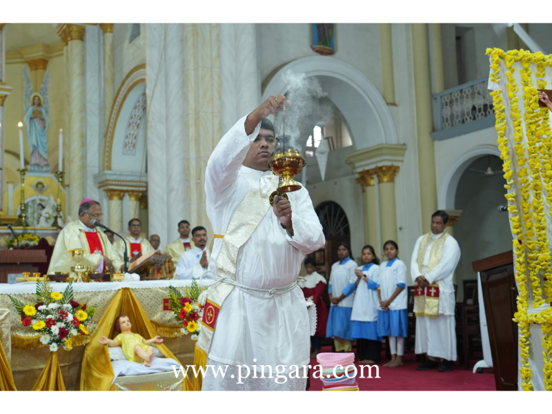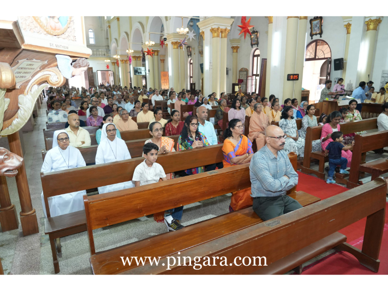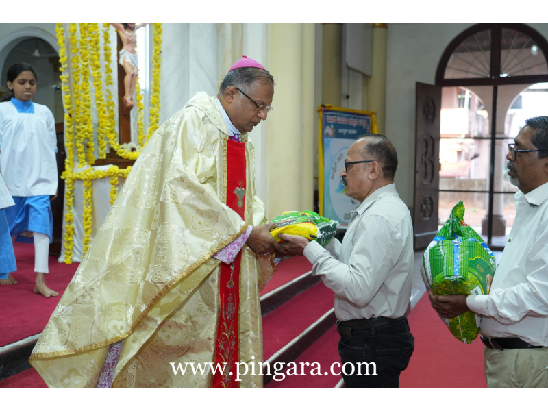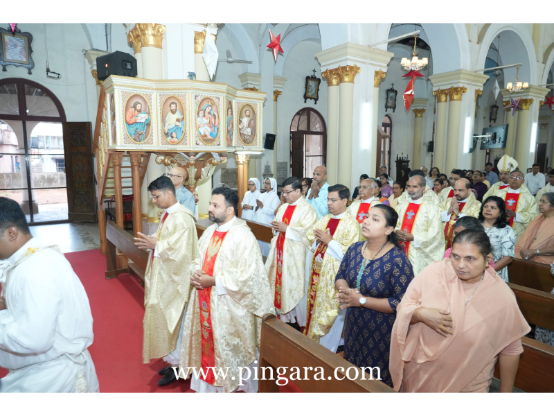 Most Rev. Dr Peter Paul Saldanha, Bishop of Mangalore, presided over the stational Mass. He was joined by concelebrants Vicar General Very Rev. Msgr. Maxim L. Noronha, Very Rev. Fr Daniel Veigas OP (Episcopal Vicar for Religious), Very Rev. Fr Naveen Pinto (Judicial Vicar and Coordinator of Pastoral Commissions), Fr Valerian D’Souza (Parish Priest, Rosario Cathedral), Fr Santhosh Rodrigues (Director, Pastoral Centre), Fr Rudolf Ravi D’Sa (Vicar Forane, Pezar), Fr Anil Ivan Fernandes (Director, CCC), Fr J.B. Crasta (Director, St Antony Ashram), Fr Valerian Fernandes, and Fr Jason Lobo.