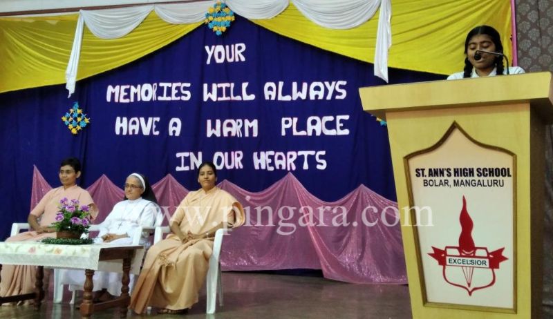 Bolar, Mangalore: St.Ann’s High School , Bolar organised a farewell programme for Sr.Elena A.C. , the Headmistress of the School on March 17th in the School Hall for her loving and selfless service to the school and educative community in general.