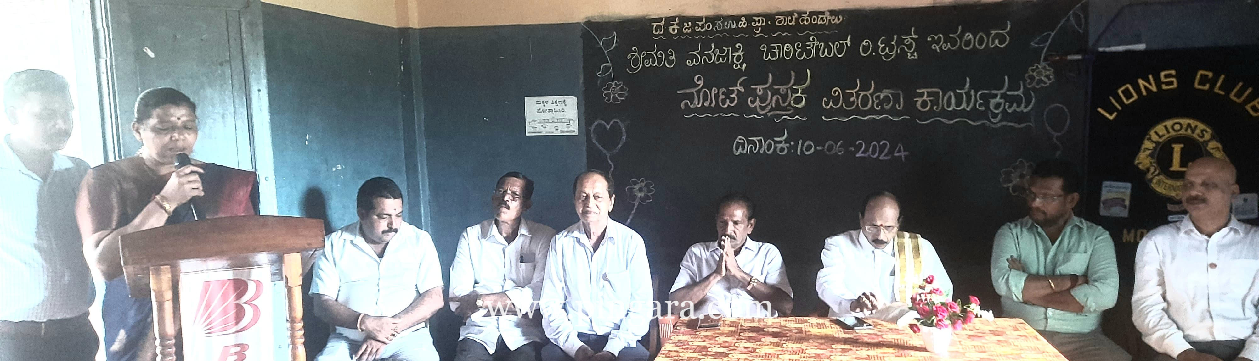 ಮೂಡುಬಿದ್ರೆ : ಸ್ಥಳೀಯ ದ.ಕ.ಜಿ.ಪಂ. ಉನ್ನತೀಕರಿಸಿದ ಹಿರಿಯ ಪ್ರಾಥಮಿಕ ಶಾಲೆ ಹಂಡೇಲು ಇಲ್ಲಿಯ ಎಲ್ಲ ವಿದ್ಯಾರ್ಥಿಗಳಿಗೆ ಬರೆಯುವ ಪುಸ್ತಕವನ್ನು ಉಚಿತವಾಗಿ ಕಲ್ಲಬೆಟ್ಟು ವನಜಾಕ್ಷಿ ಚಾರಿ ಟೇಬಲ್ ಟ್ರಸ್ಟ್ ನವರು ಒದಗಿಸಿ ಕೊಟ್ಟರು. ಇದರ ವಿತರಣಾ ಸಮಾರಂಭ ಜೂನ್ ಹತ್ತರಂದು ಶಾಲೆಯಲ್ಲಿ ನಡೆಯಿತು.