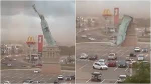 This is a replica of the Statue of Liberty, the first statue in the United States is in New Jersey. Due to the strong winds blowing in Brazil, the statue tilted and then collapsed in an empty parking lot.
