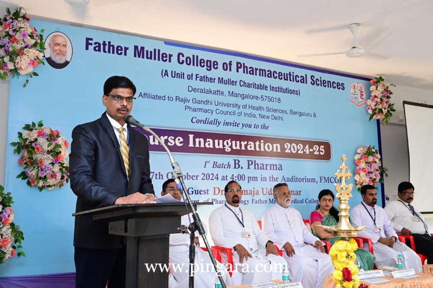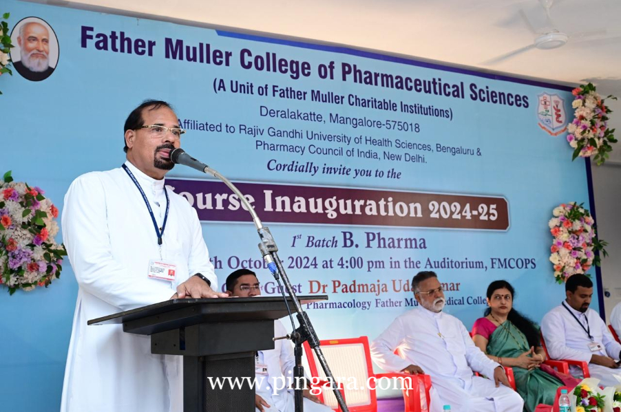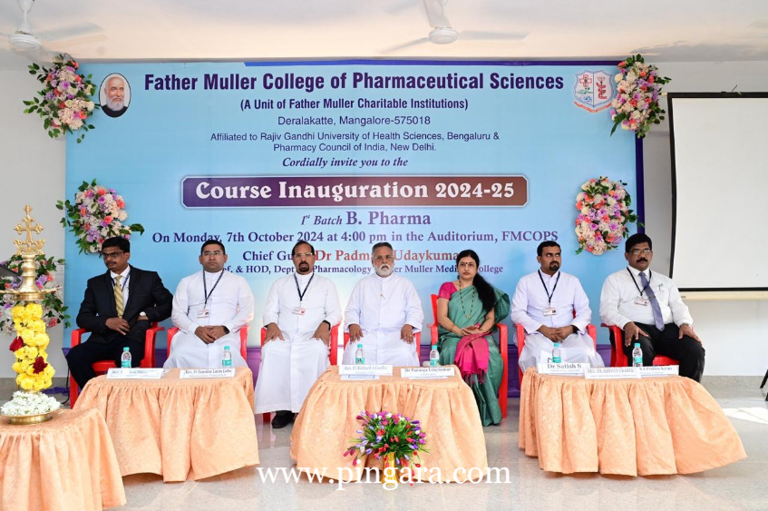 Derlakatte, Manalore: The Father Muller College of Pharmaceutical Sciences (FMCOPS), Deralakatte, Mangalore, a unit of Father Muller Charitable Institutions, marked a significant milestone on Monday, 7th October 2024, with the inauguration of its 2024-25 academic year and the commencement of its 1st batch of Bachelor of Pharmacy (B.Pharm) students. The grand event took place in the new auditorium within the newly constructed FMCOPS building.