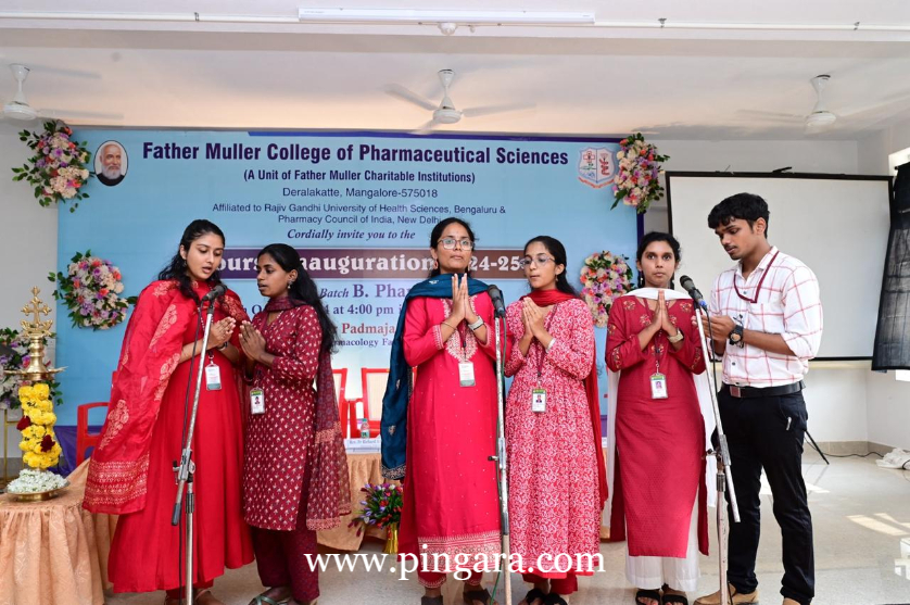 The event proceeded with an inaugural ceremony to formally launch the B.Pharm program. A heartfelt prayer song by the students of Father Muller Homoeopathic Medical College set the tone for the proceedings.