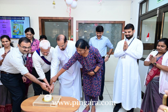 The formal inauguration was held with the unveiling of the festive offer poster, symbolizing the launch of this special community-oriented health initiative. In keeping with the joyful spirit of Christmas and the New Year, the celebrations were furthered with the cutting of a celebratory cake by Rev. Fr. Faustine Lucas Lobo, along with dignitaries present and Laveen D’Souza, the first beneficiary of the health check-up scheme on that day. The occasion reflected shared joy, goodwill, and a collective commitment to health and well-being.