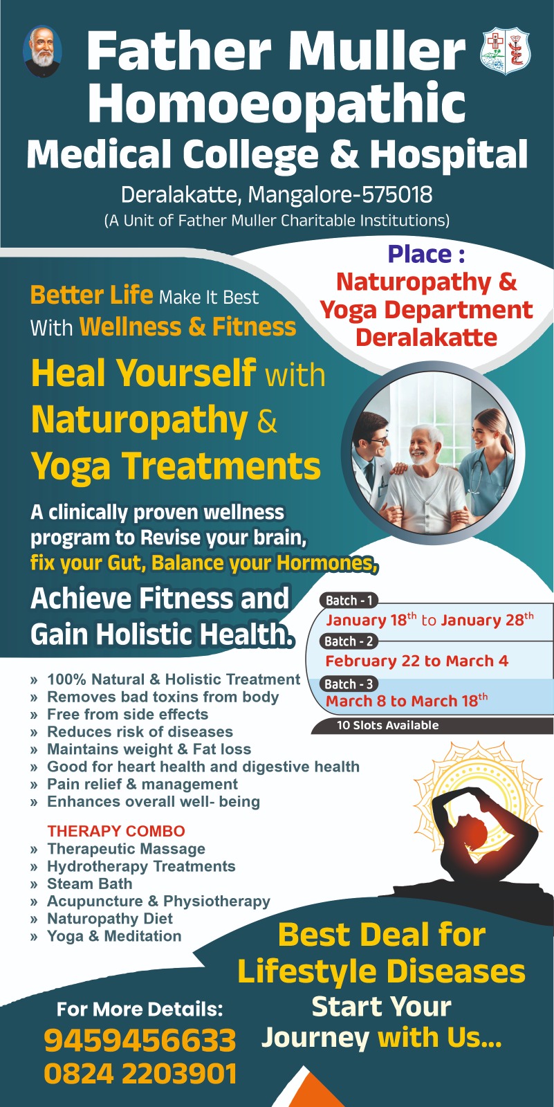 With the vision of promoting holistic health and harmony of body, mind and soul, we are pleased to announce the establishment of a wellness centre at Father Muller Homeopathic Hospital Deralakatte, Mangalore.