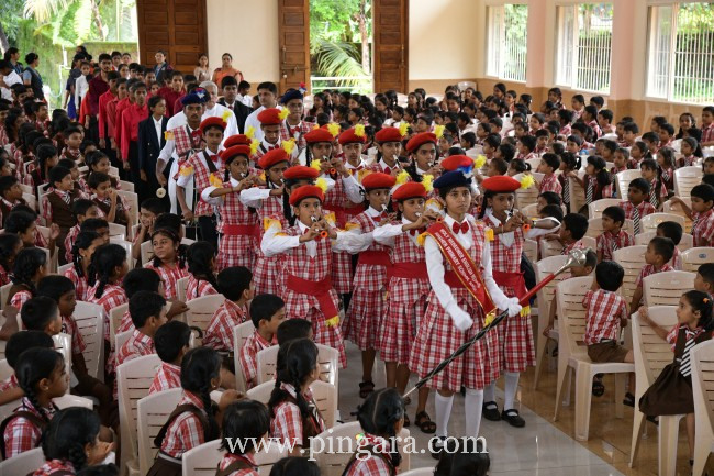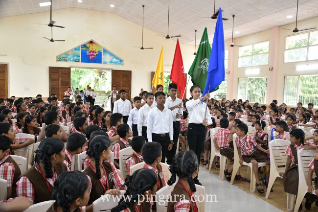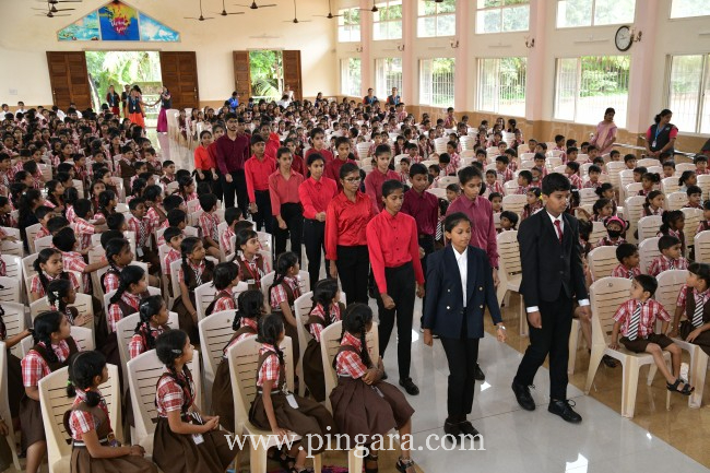 The program began by invoking God's blessings through a prayer dance and lighting the lamp. Correspondent V. Rev. Fr Walter D'Mello presided the program and motivated the all School Leaders to carry out their responsibilities faithfully. Chief guest Rev Fr Anil Avild Lobo, Parish Priest of St Francis Assisi Church, Nainad, inaugurated the school clubs, squads and activities innovatively. Headmaster Rev Fr Clifford Pinto administered the Oath to the members of School cabinet. The aims and objectives of the clubs namely English Club, Kannada Club, Hindi Club, Eco Club and Science Club, and school squads namely, Blue Bunnies, Green Teens, Red Robins and Yellow Bees, very symbolically represented by the respective leaders.