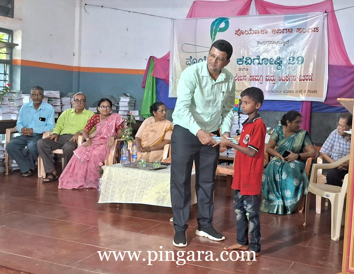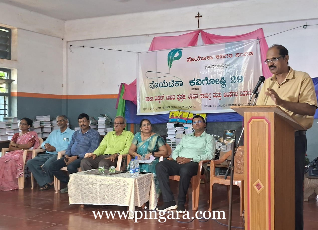 Kinnigoli: The 29th Poetica Kavigoshti was held on 1st June, 2024, Saturday at 11 am along with the distribution of free books, stationary and toys to school children at Little Flower Higher Primary School, Kinnigoli.