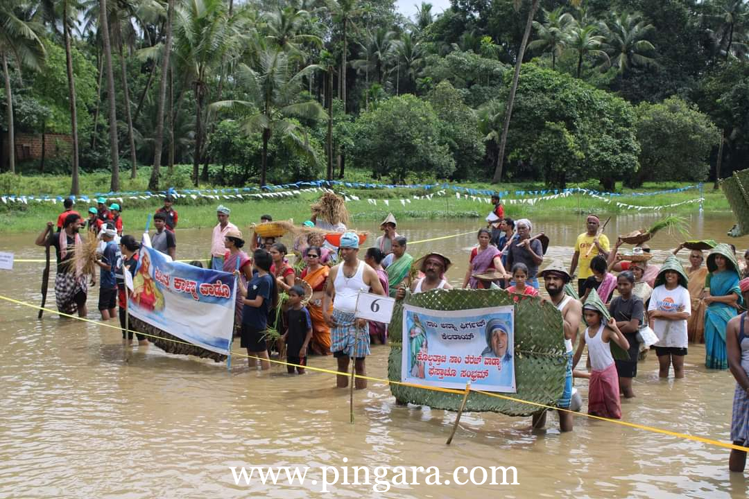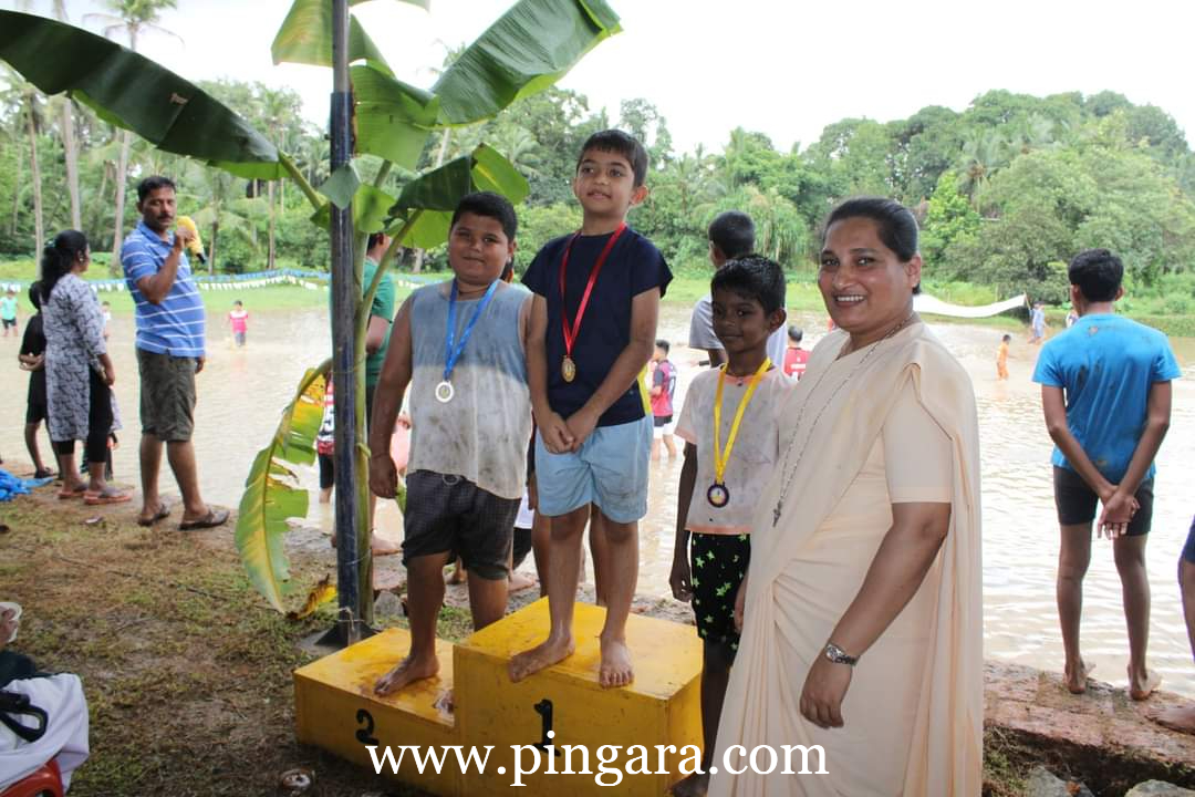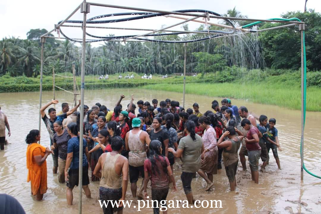 On this occasion, farmer Jude Cornelio, who has been donating grain for the harvest festival for many years, was honored. Many participated in the 'Pepsi Lucky Draw' and won prizes. Lunch was arranged for all attendees. Various competitions were held from 10 AM to 5 PM, and in the evening, prizes were distributed to the winners during the closing ceremony. The dignitaries present were honored with a memento. Manisha D'Souza welcomed everyone, and Alisha Crasta gave the vote of thanks. The event was compered by Santosh D'Costa and Benoy D'Souza. People of all ages, from children to elders, participated in various competitions and enjoyed themselves in the muddy fields.