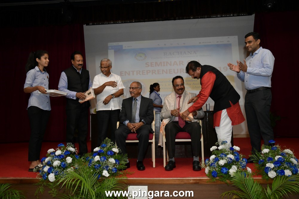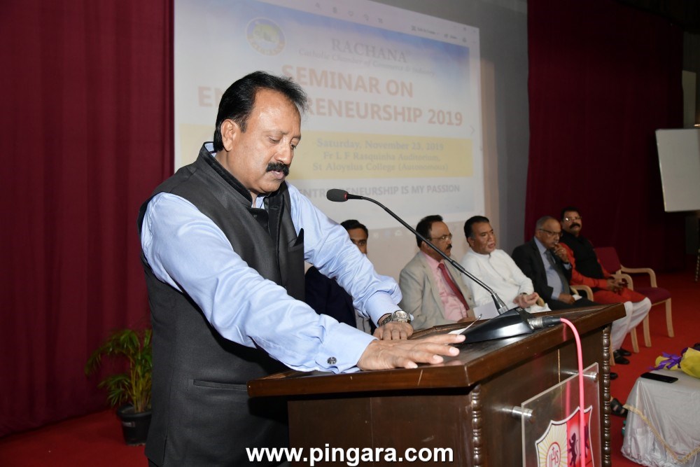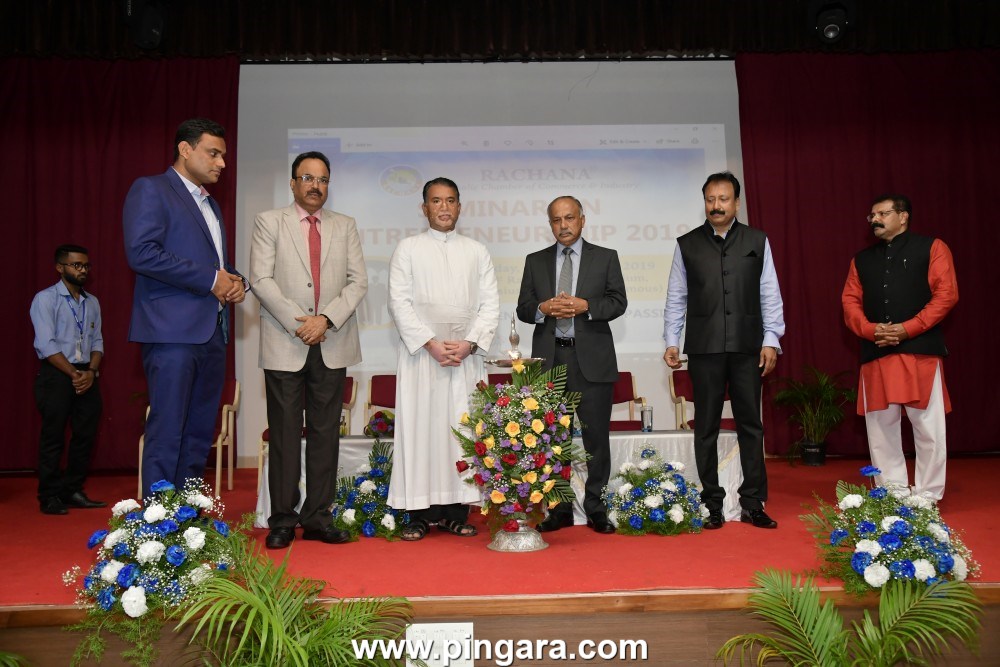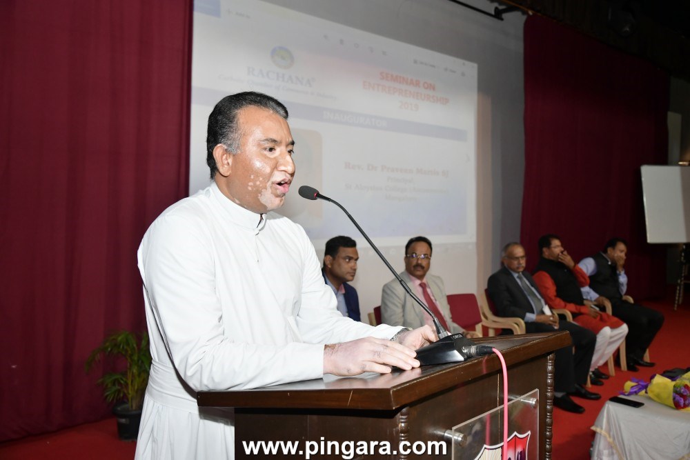 Mangalore: A day seminar on entrepreneurship, career guidance and training for youth organized by Rachana, Catholic Chamber of Commerce and Industry, in association with St Aloysius College (Autonomous), was inaugurated at Fr L F Rasquinha Hall, St Aloysius College, Mangalore. Inaugurating the programme, Fr Praveen Martis, principal, St Aloysius College, said, “It is a pleasure to inaugurate this event. Many of the delegates of this seminar will be the known entrepreneurs of tomorrow. First of all, I appreciate Rachana for holding such a meaningful programme. I also look forward to many programmes from them which will really help youth.