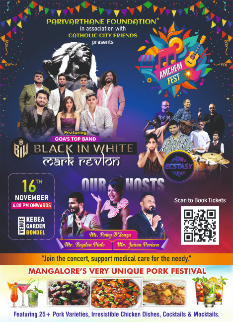 Mangalore,: The city of Mangalore is all set to witness an unforgettable evening as Parivarthane Foundation, in association with Catholic City Friends, presents AMCHEM FEST 2025 – a celebration that brings together music, food, and a noble cause.