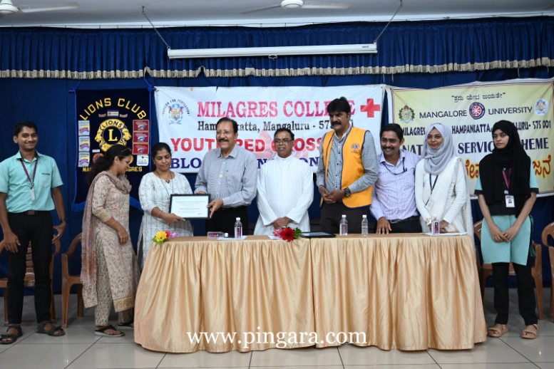 Mangalore: Blood donation camp was inaugurated at the Milagres College auditorium, jointly organized by the Youth Red Cross, National Service Scheme (NSS), and Milagres Lions Club.