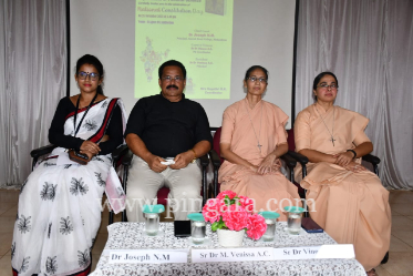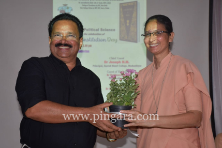 Mangalore: The Department of Political Science, St Agnes College (Autonomous), Mangaluru celebrated Constitution Day on 25 November 2022. The objective of the programme was to inculcate constitutional responsibility, to know more about our constitution and to sensitize students about the importance of our constitution. Dr Joseph N M, Principal, Sacred Heart College, Madanthyar was the Chief Guest. Sr Dr M. Venissa A.C. presided over the programme and Sr Dr M Vinora A.C. was the Guest of Honour. Gayathri BK, Head of the Department of Political Science introduced the Chief Guest and welcomed the gathering. The students performed a mime show and sang a song significant for the celebration.