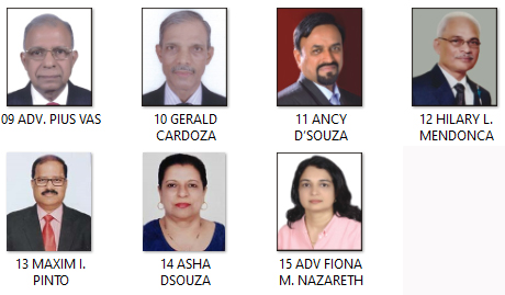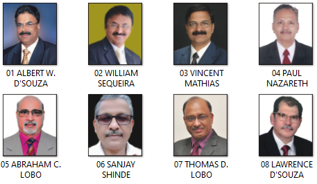 Albert W. Dsouza Chairman B.A. (PRTG.TECH), William J. Sequeira Vice Chairman B.Com, Vincent L. Mathais Director B.Sc. LLB (GEN), Paul G. Nazareth Professional Director B.Com (Hons),GDCA,CAIIB,FCA,DISA (ICAI), Abraham C. Lobo Director B.com, Lawrence R. Dsouza Director B.Sc., D.B.M, ADV. Pius j. Vas Director B.Sc., LLB, Thomas D. Lobo Director B Pharm., PGDMS(BOM), PGD Exim, Gerald C. Cardoza Professional Director B.Sc., LLB(GEN), Sanjay V.Shinde Director B.Tech.(Chem) I.I.T-B, Ancy S. Dsouza Director B.Sc.,B.E.(computer Science), Maxim I. Pinto Director M.Com. CAIIB, Hilary L. Mendonca Director B.Sc. LLB,CAIIB, Adv. Fiona M. Nazareth Director B.Com., LLB, Asha S. Dsouza Director B.A, B.Ed.