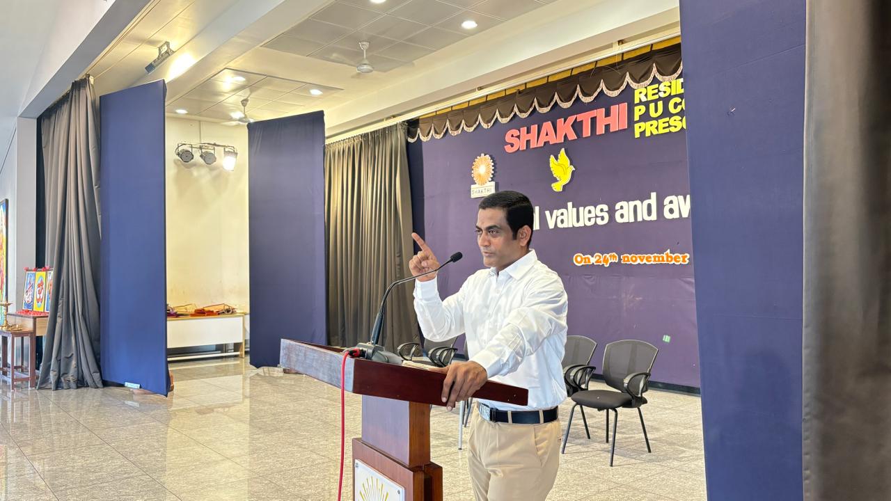 ಮಂಗಳೂರು: ಮಂಗಳೂರಿನ ಶಕ್ತಿನಗರದಲ್ಲಿರುವ ಶಕ್ತಿ ರೆಸಿಡೆನ್ಸಿಯಲ್ ಶಾಲೆಯಲ್ಲಿನ ರೇಷ್ಮಾ ಮೆಮೋರಿಯಲ್ ಸಭಾಂಗಣದಲ್ಲಿ 8ನೇ 9ನೇ 10ನೇಹಾಗೂ ಪಿಯುಸಿ ವಿದ್ಯಾರ್ಥಿಗಳಿಗಾಗಿ ವಿಶೇಷವಾದ ಸ್ಫೂರ್ತಿದಾಯಕವಾದ ಮೌಲ್ಯಧಾರಿತವಾದ ಕಾರ್ಯಕ್ರಮವನ್ನು ಹಮ್ಮಿಕೊಳ್ಳಲಾಗಿತ್ತು.