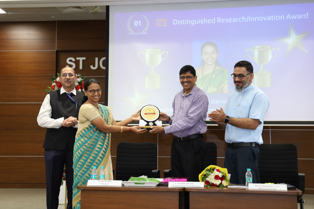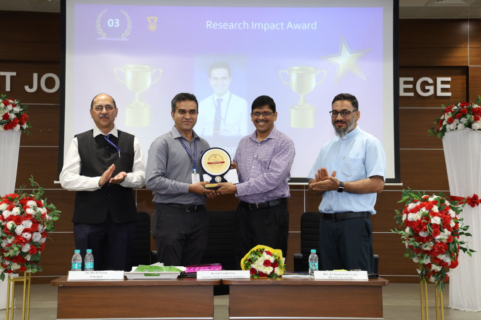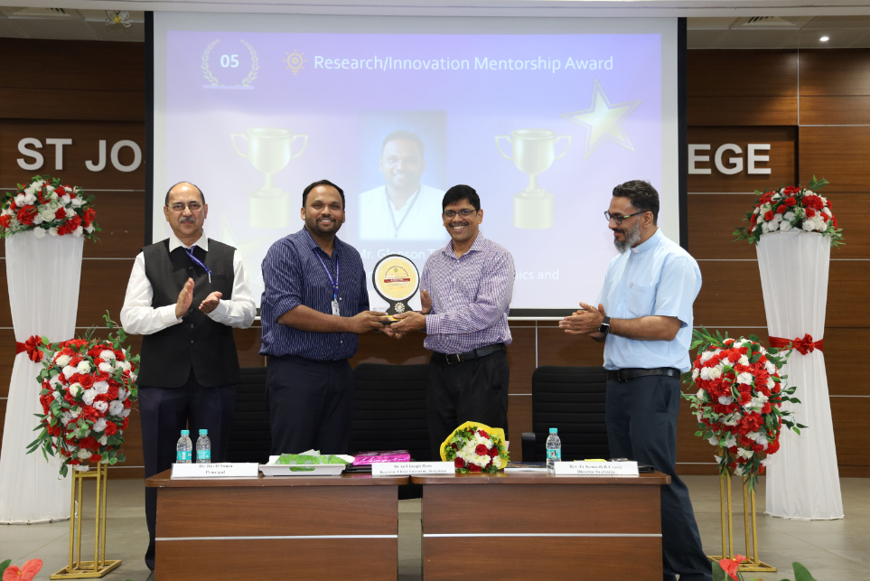 Dr Anil Joseph Pinto, Registrar, Christ University, Bengaluru, chief guest of the program gave away the Research awards in the presence of Rev. Fr Kenneth Rayner Crasta, Assistant Director, Dr Rio D’Souza, Principal and Dr Purushothama Chippar, Vice Principal. The SJEC Research Awards continue to highlight the institution’s commitment to academic and research excellence, inspiring faculty members to push the boundaries of knowledge and innovation.