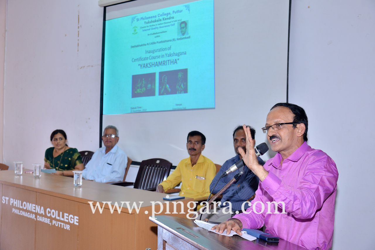Students of Yakshakalakendra rendered invocation. Prashanth Rai, Coordinator of Yakshakalakendra welcomed and presented introductory remarks. Rajeshwary M ,Coordinator of the certificate course proposed vote of thanks. Dinakara Anchan,Asst. Professor Dept of Commerce compered the programme. Yakshaguru Sri Balakrishna Poojary was present on the dais. 50 students of the College have enrolled for the Certificate Course.