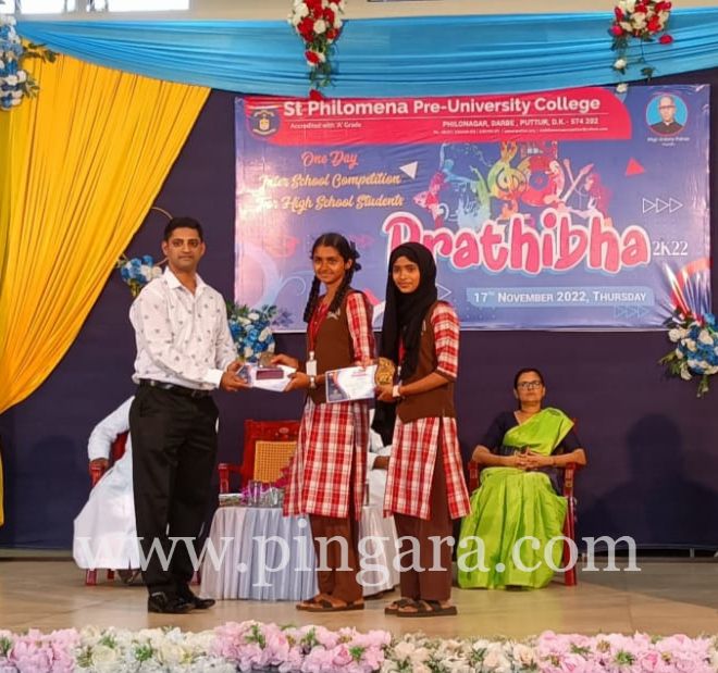 Belthangady: Luha Mariyam and Fathimath Jaseera (Std 10) of Holy Redeemer English Medium School secured second place in the Inter-School Collage Making competition "Prathiba", on the theme 'Save Environment', for High School students conducted on 17th November by St Philomena's PU College, Puttur.