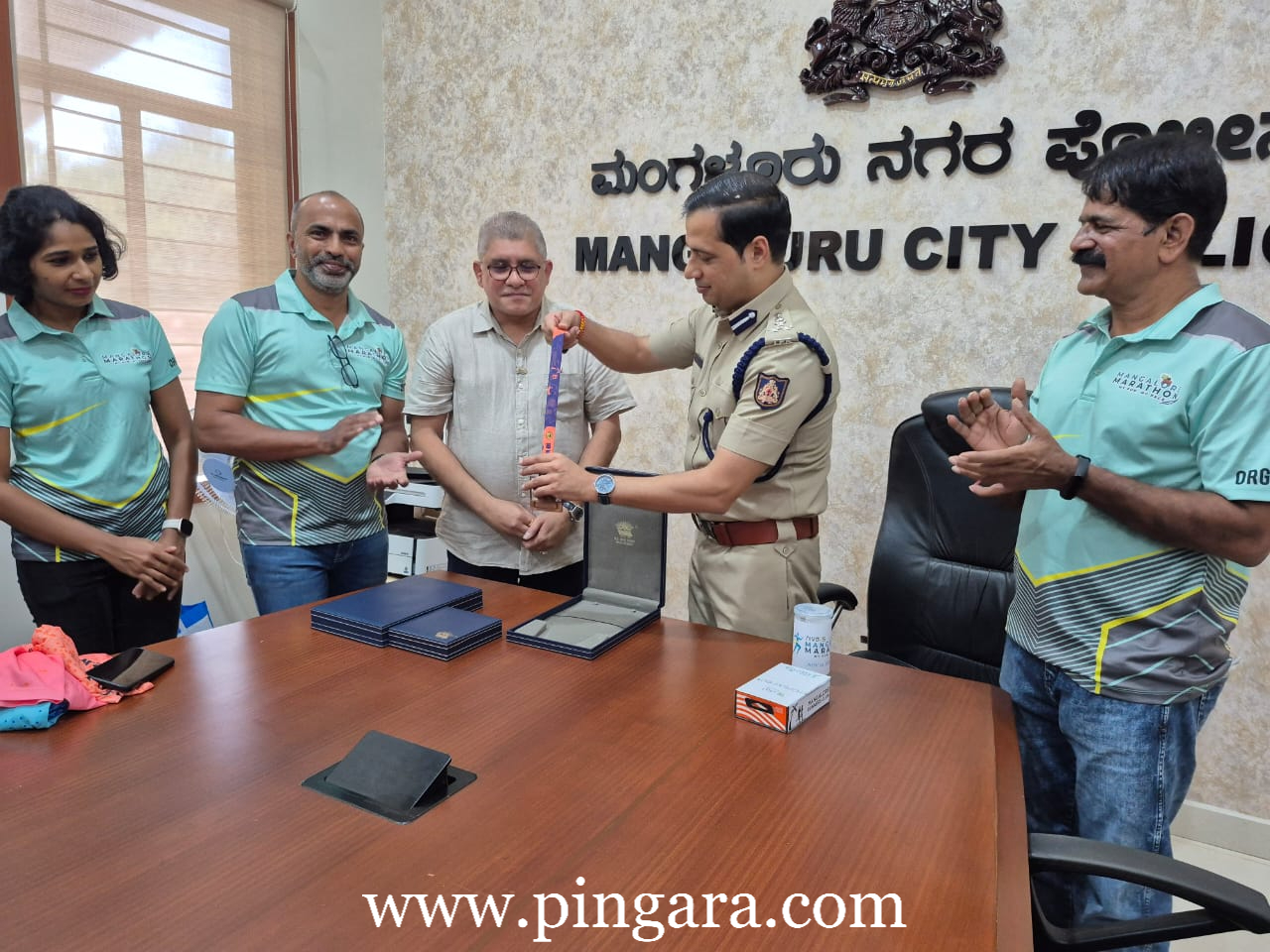 Mangalore, Oct 24: The much-anticipated Niveus Mangalore Marathon 2024 reached a significant milestone with the grand unveiling of the finisher's medal and T-shirt by the esteemed Commissioner of Police, Anupam Agarwal, IPS. The Police Commissioner commended Mangalore Runner’s Club (MRC) and the sponsors for their dedication and hard work, highlighting how their collective efforts have set the marathon on a path of becoming a successful annual event at Mangalore. He expressed his well wishes for the event and assured the organizers of the police department’s support to ensure a safe and successful marathon not just for this year but also for the years to follow. He emphasized on the importance of fitness through running. He also called out the youth to experience the runner’s high by participating in the event.
